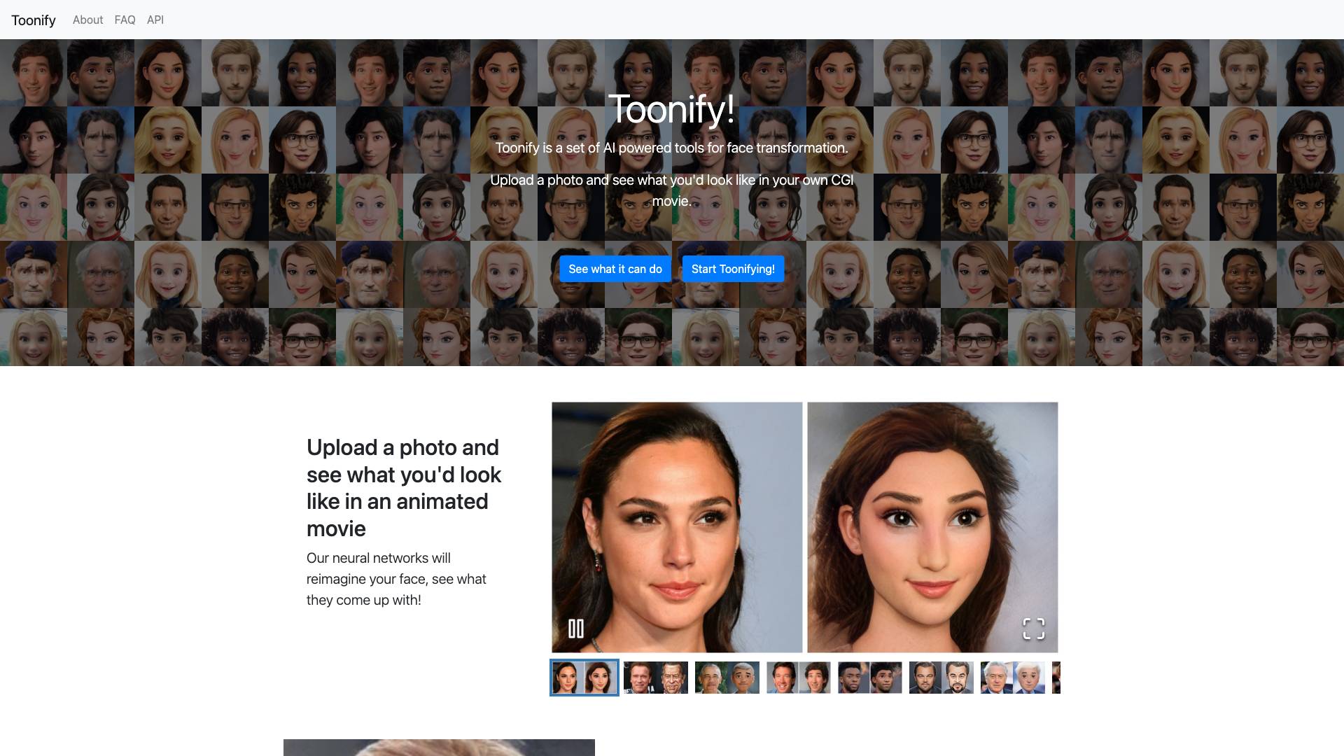 Toonify transforms your photos into animated characters with customizable features, offering both free and premium high-resolution options.