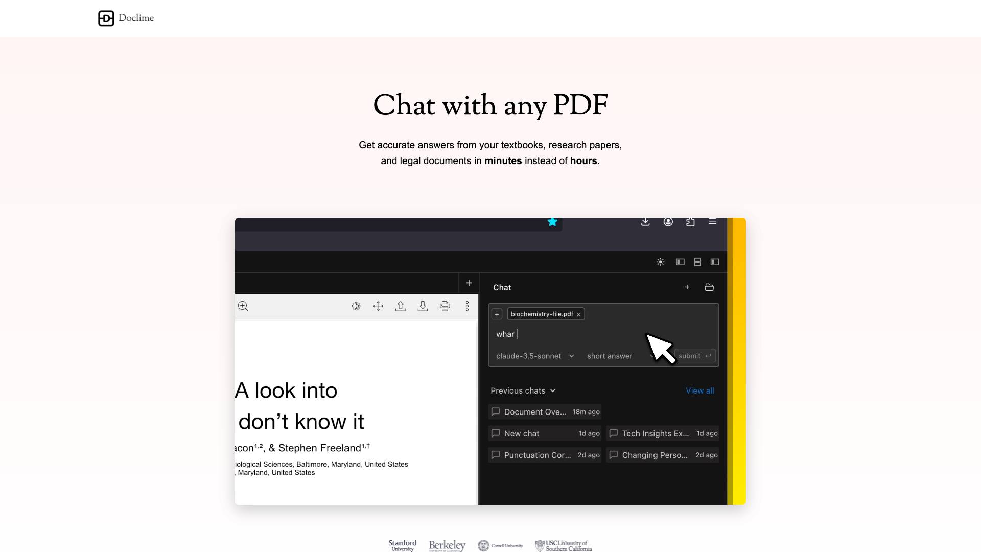 Doclime enables users to interactively chat with PDF documents, providing quick, accurate answers and insights while saving time and enhancing efficiency.