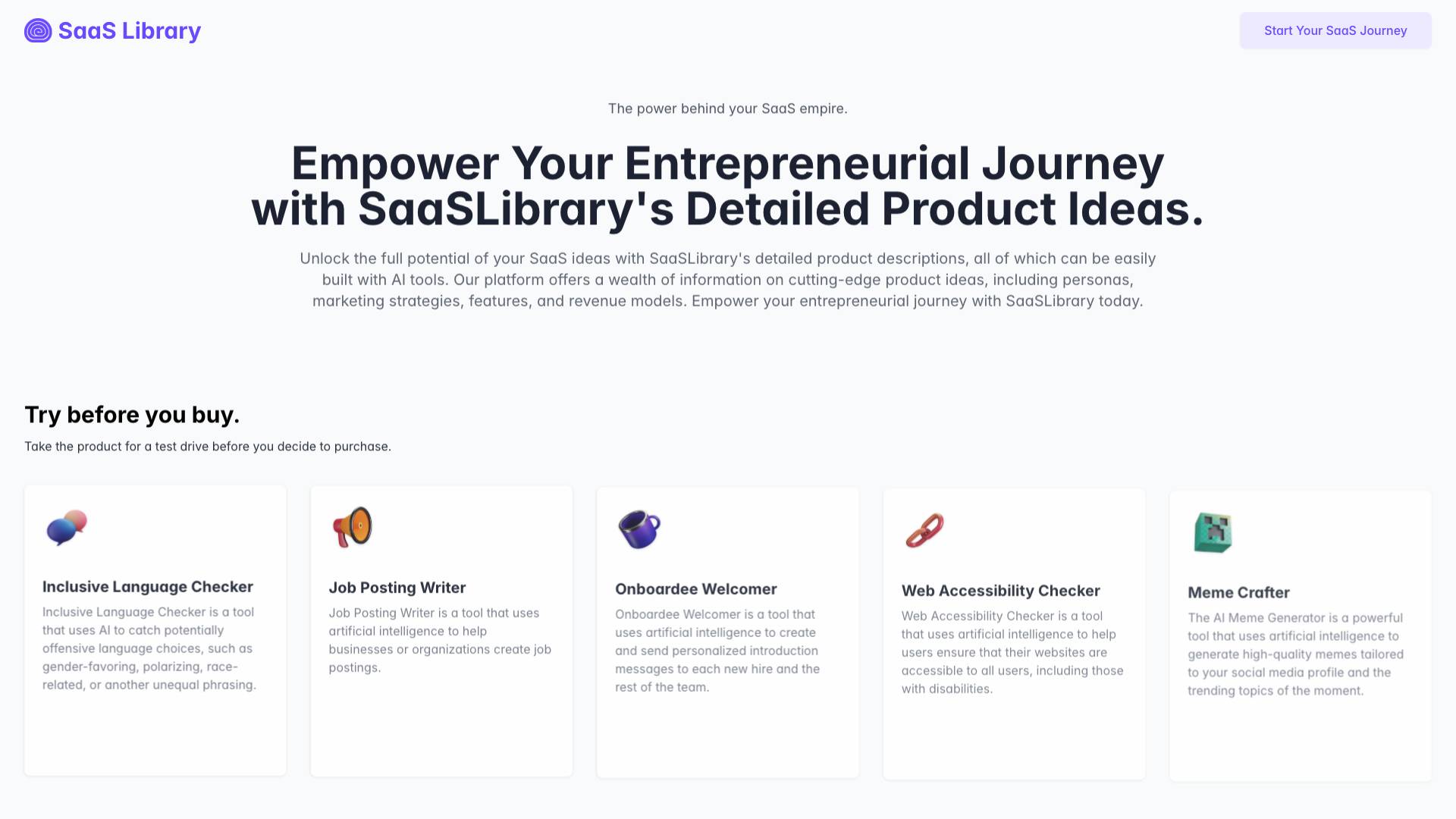 SaaS Library empowers entrepreneurs with detailed SaaS product ideas and AI tools to unlock their full potential in building successful businesses.