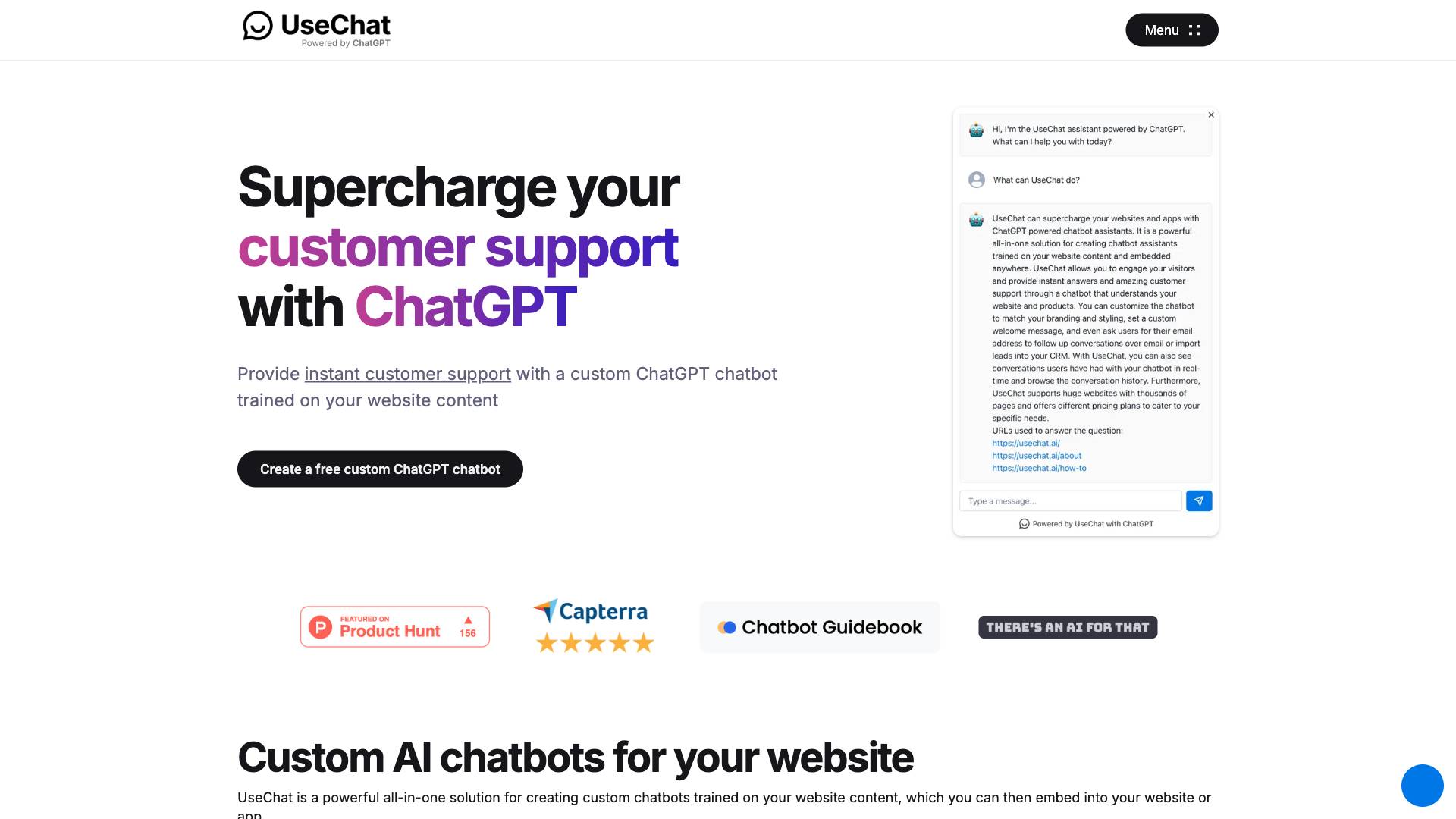 UseChat is an AI tool designed for answering user inquiries with up-to-date knowledge as of October 2023.