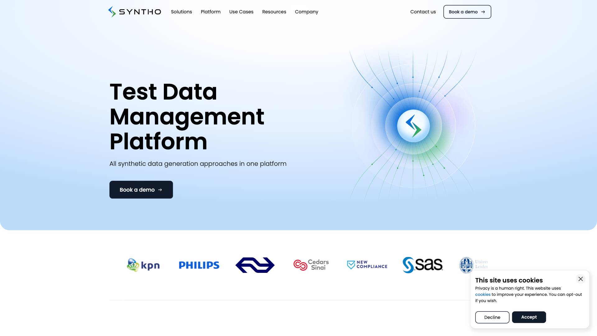 Syntho is a test data management platform that generates secure synthetic data, protecting sensitive information while enhancing analytics and compliance.