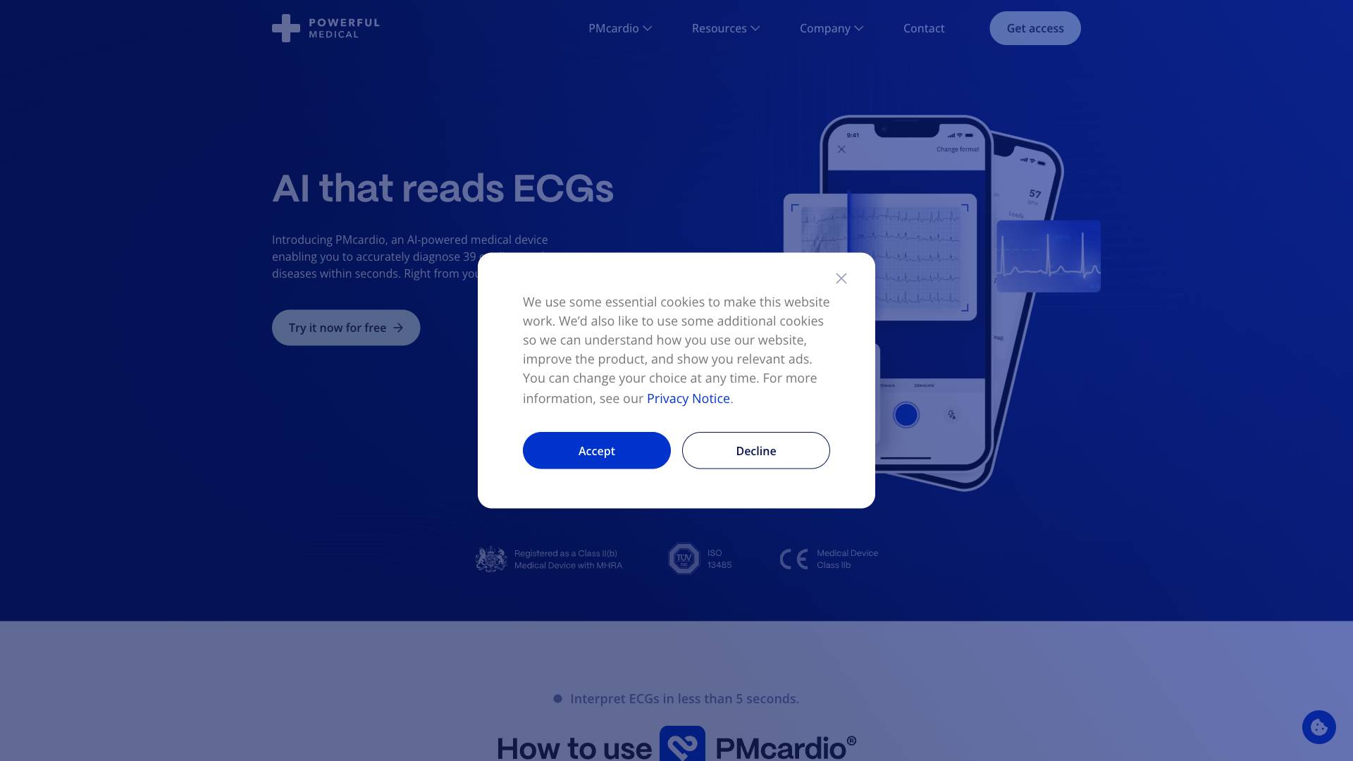 PMcardio is an AI-powered app that swiftly interprets ECGs, diagnosing 39 cardiovascular diseases and providing treatment plans in seconds.