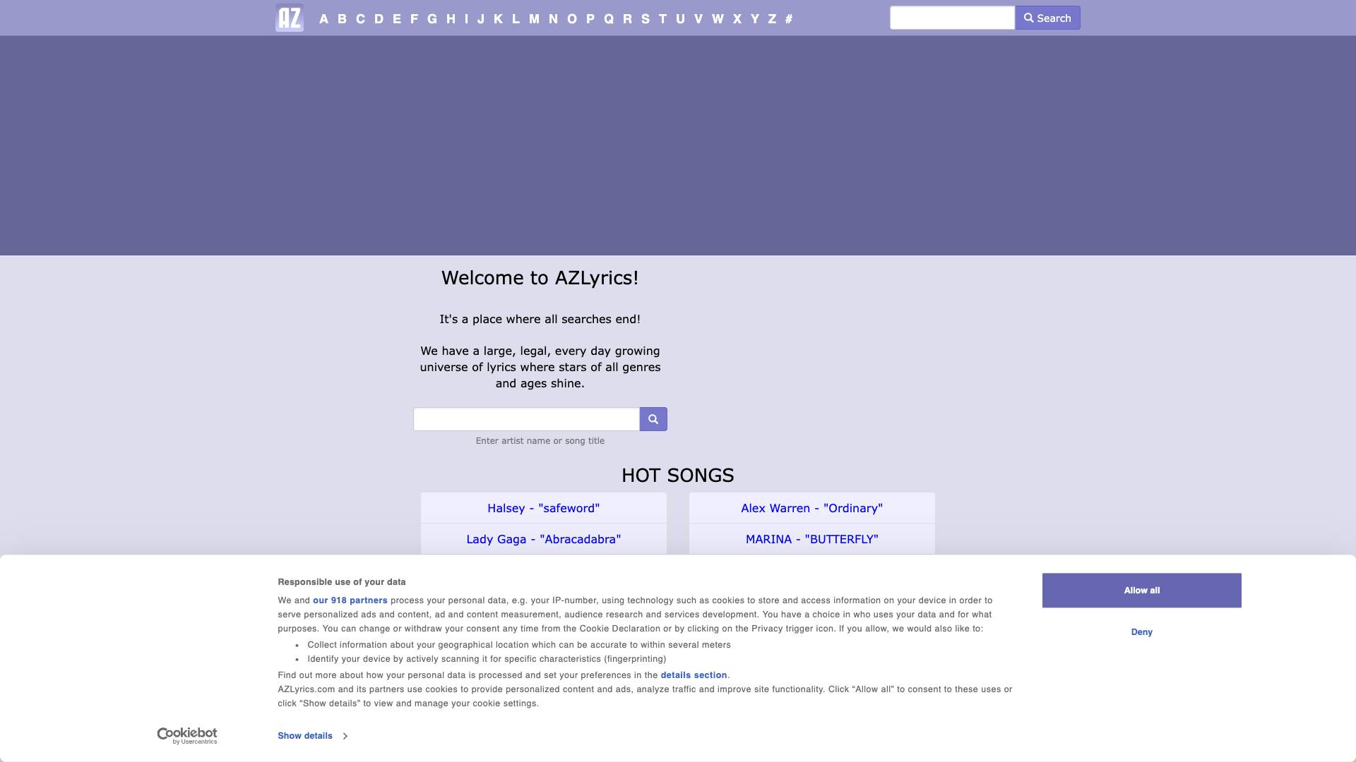 AZLyrics offers a vast collection of legal song lyrics, allowing users to easily search and discover music across various genres.