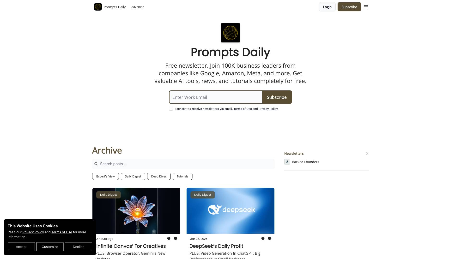 "Prompt Engineering offers a free daily newsletter delivering essential AI tools, news, and tutorials to over 100K business leaders."