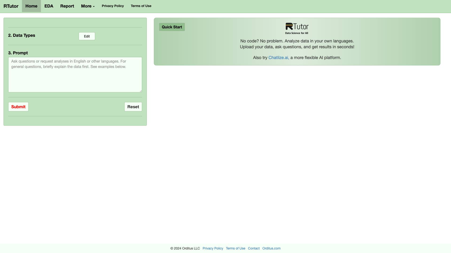 RTutor enables users to effortlessly analyze data using their own languages by simply uploading data and asking questions for quick results.