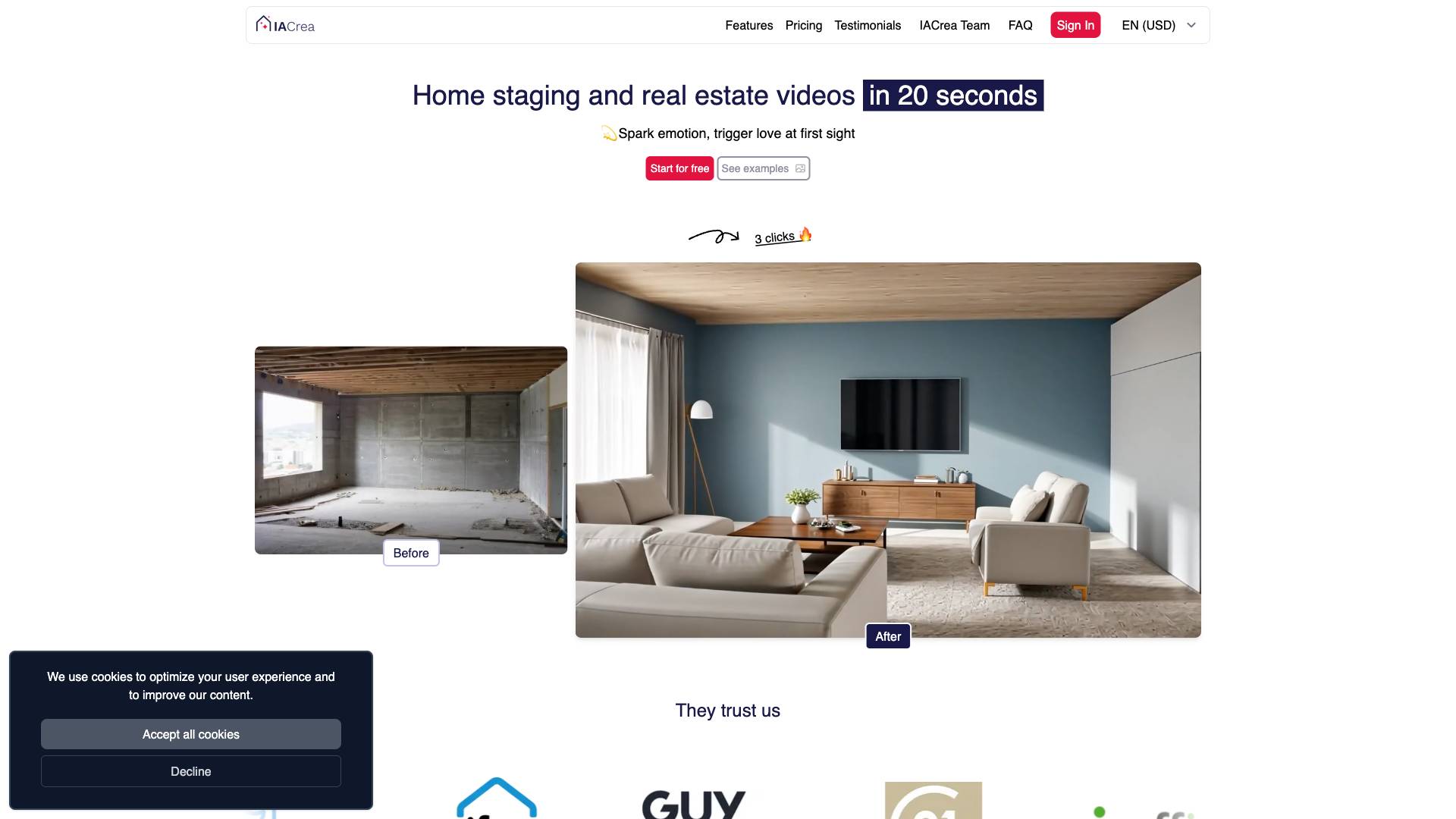 IACrea enhances real estate photos and creates captivating videos in seconds, simplifying home staging with no artistic talent required.