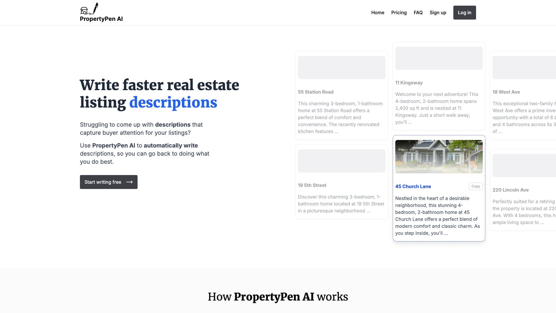 PropertyPen AI generates tailored real estate listing descriptions quickly, allowing agents to focus on selling while enhancing their marketing efforts.