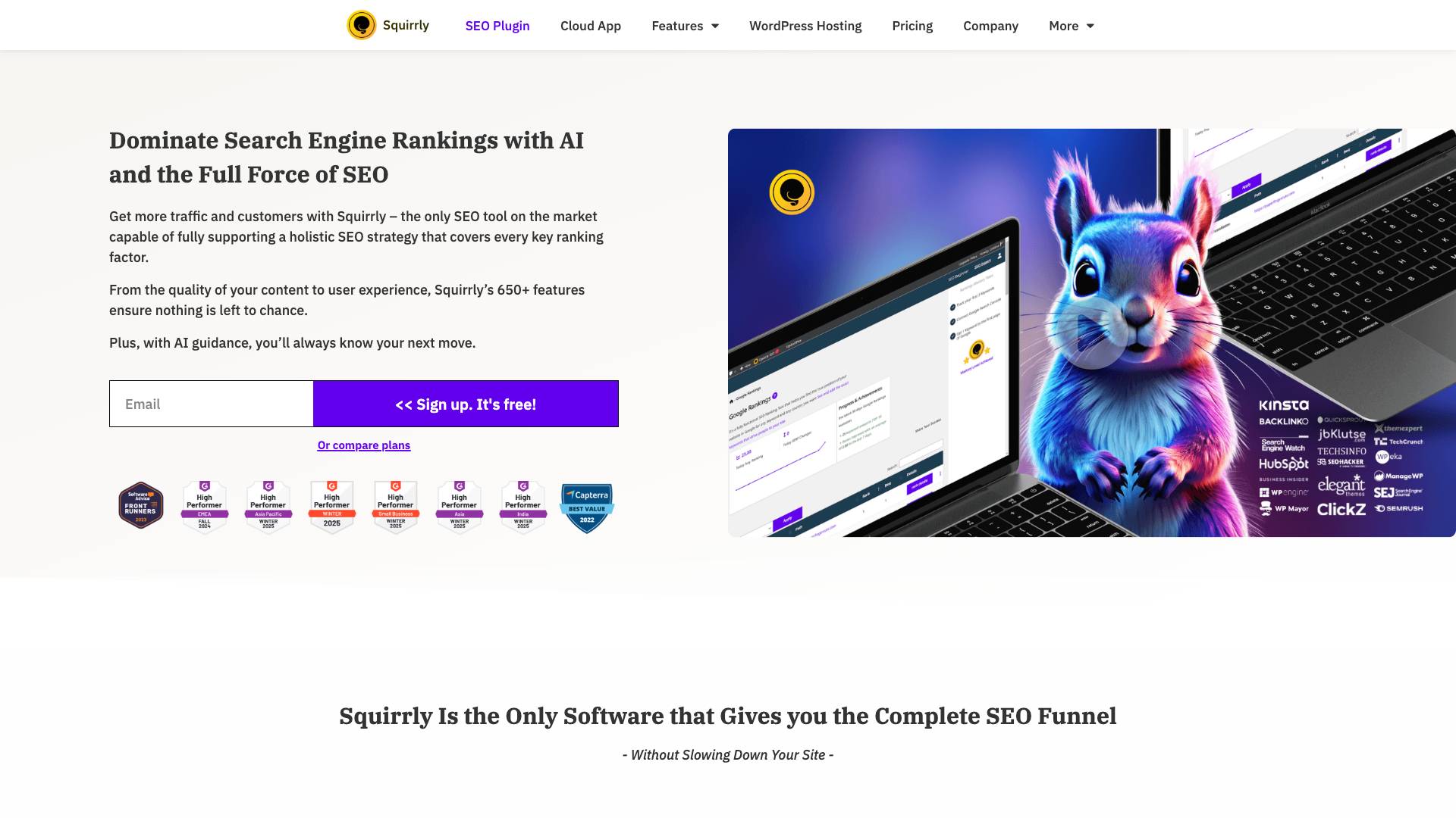 Squirrly SEO is an AI-powered all-in-one SEO tool that simplifies optimization with expert guidance, 650+ features, and real-time feedback.