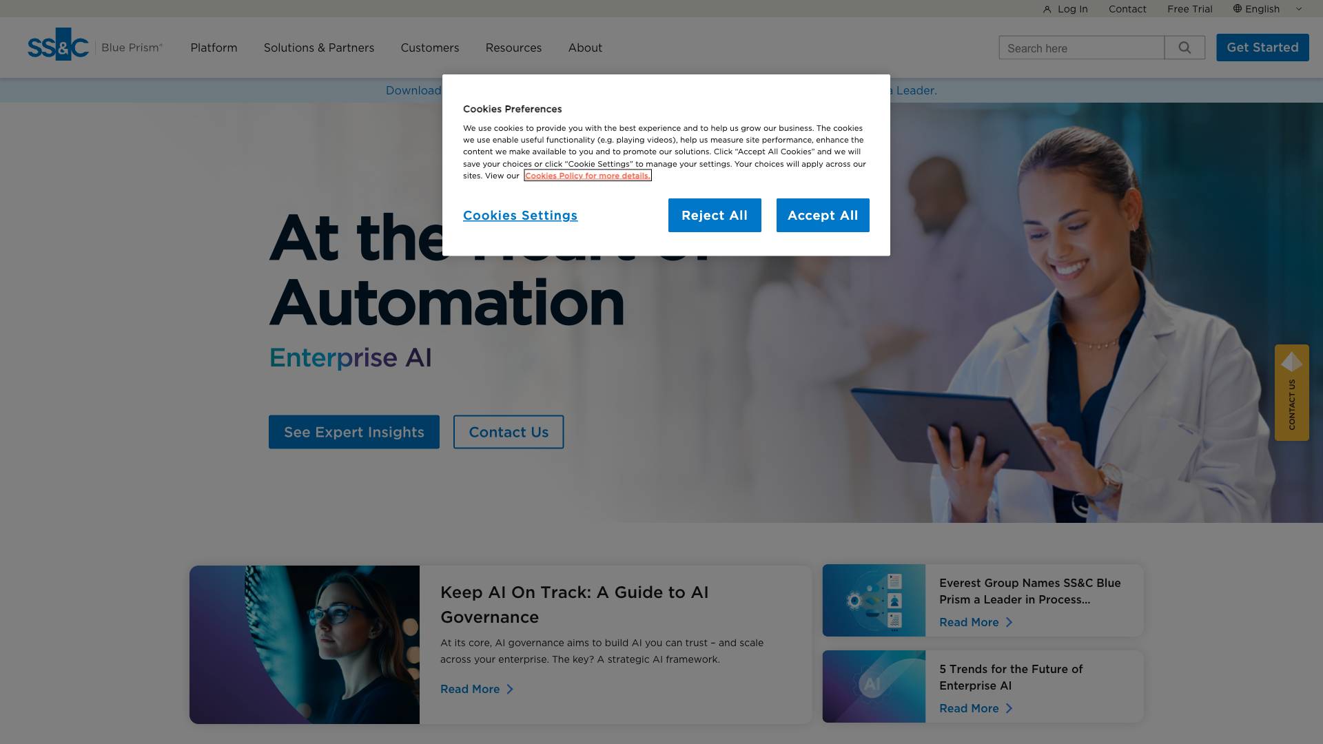 SS&C Blue Prism is an Enterprise AI platform that combines automation and orchestration to enhance business operations and elevate efficiency.